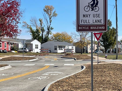 Features & Sites: playgrounds, Cherry Hill Park aquatic center, splash pad, ball fields, shelters, picnic tables, and other amenities at the parks along the way. Trailhead parking is available at each of the parks. Street crossings are striped and include a Rapid Rectangular Flashing Beacon System for safety. A great family outing.